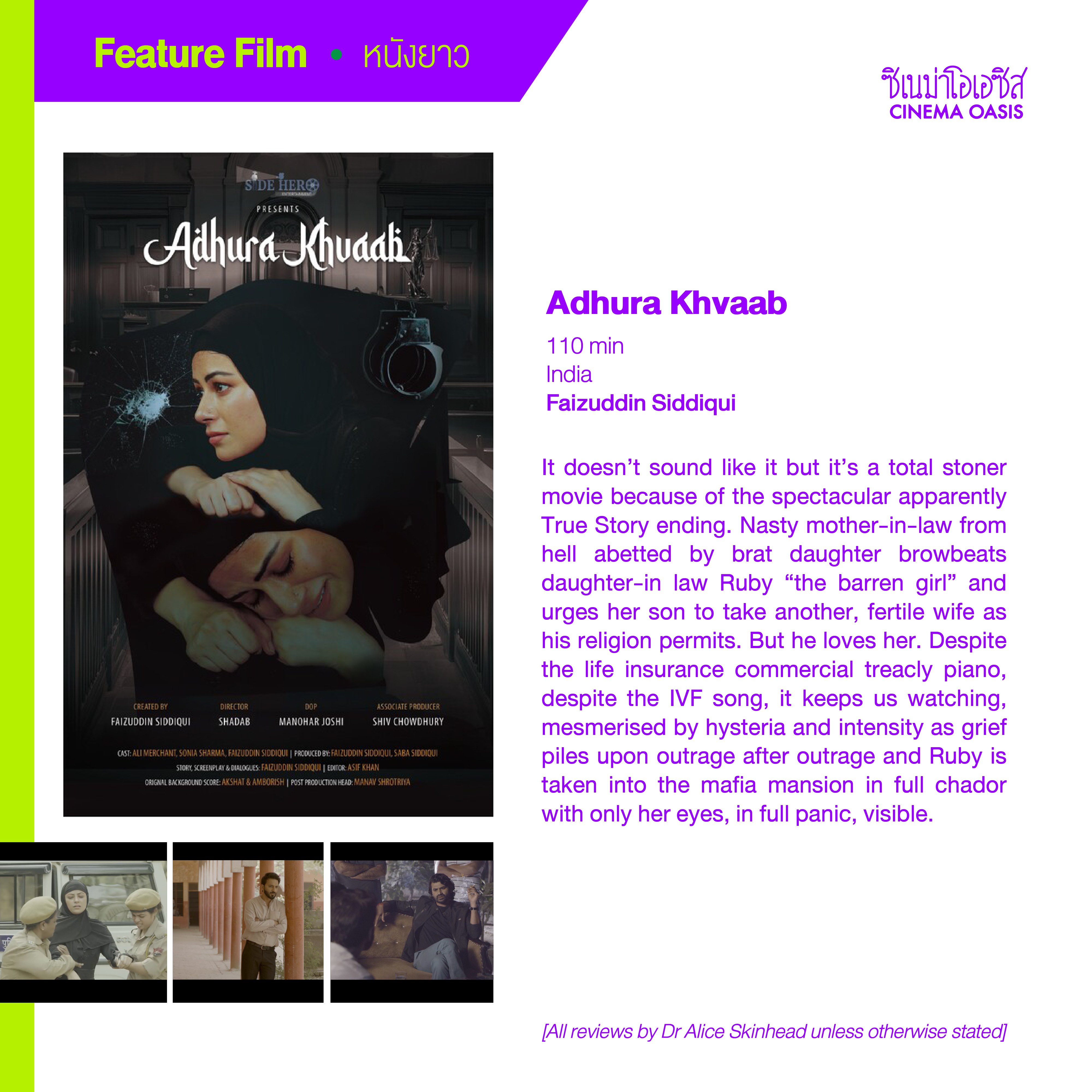 It doesn’t sound like it but it’s a total stoner movie because of the spectacular apparently True Story ending. Nasty mother-in-law from hell abetted by brat daughter browbeats daughter-in law Ruby “the barren girl” and urges her son to take another, fertile wife as his religion permits. But he loves her. Despite the life insurance commercial treacly piano, despite the IVF song, it keeps us watching, mesmerised by hysteria and intensity as grief piles upon outrage after outrage and Ruby is taken into the mafia mansion in full chador with only her eyes, in full panic, visible.