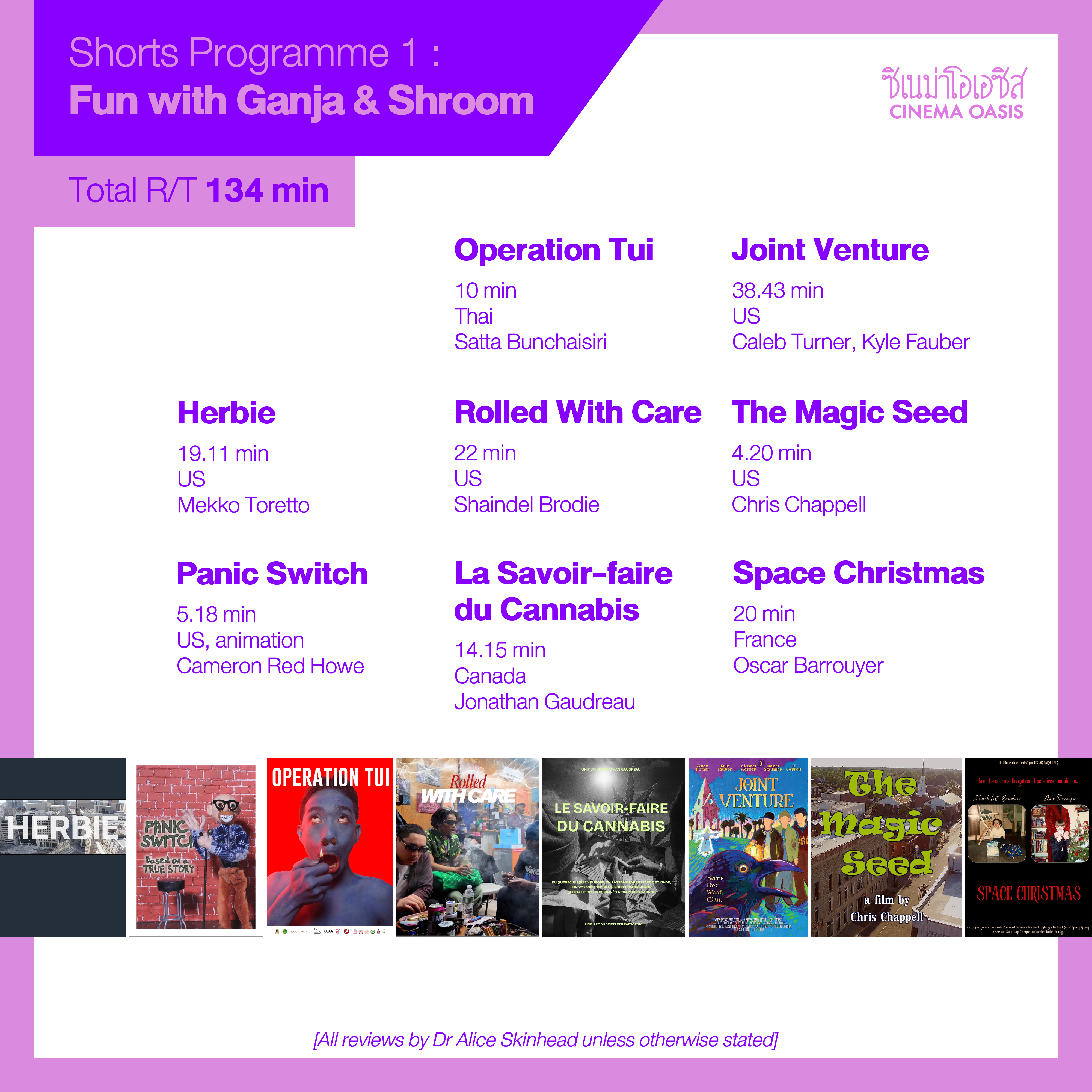 What is a stoner movie?This was the Golden Ganja question as we watched the exotic entries one after another. It’s not just the dude stuff or the trippy images with disassociated dialogue. It dawned on us that what makes a film a stoner movie is its sense of reality, a certain observational distance—Zen detachment. They don’t all show ganja on screen or even touch on weed culture, but they all have in common the state of being stoned.The point being: If contemporary consensus reality with its abusive half-truths is clearly losing its mind, artists, filmmakers and cinephiles have the right—even the dharma—to subvert and shatter that cherished mirage.All we weed is love.