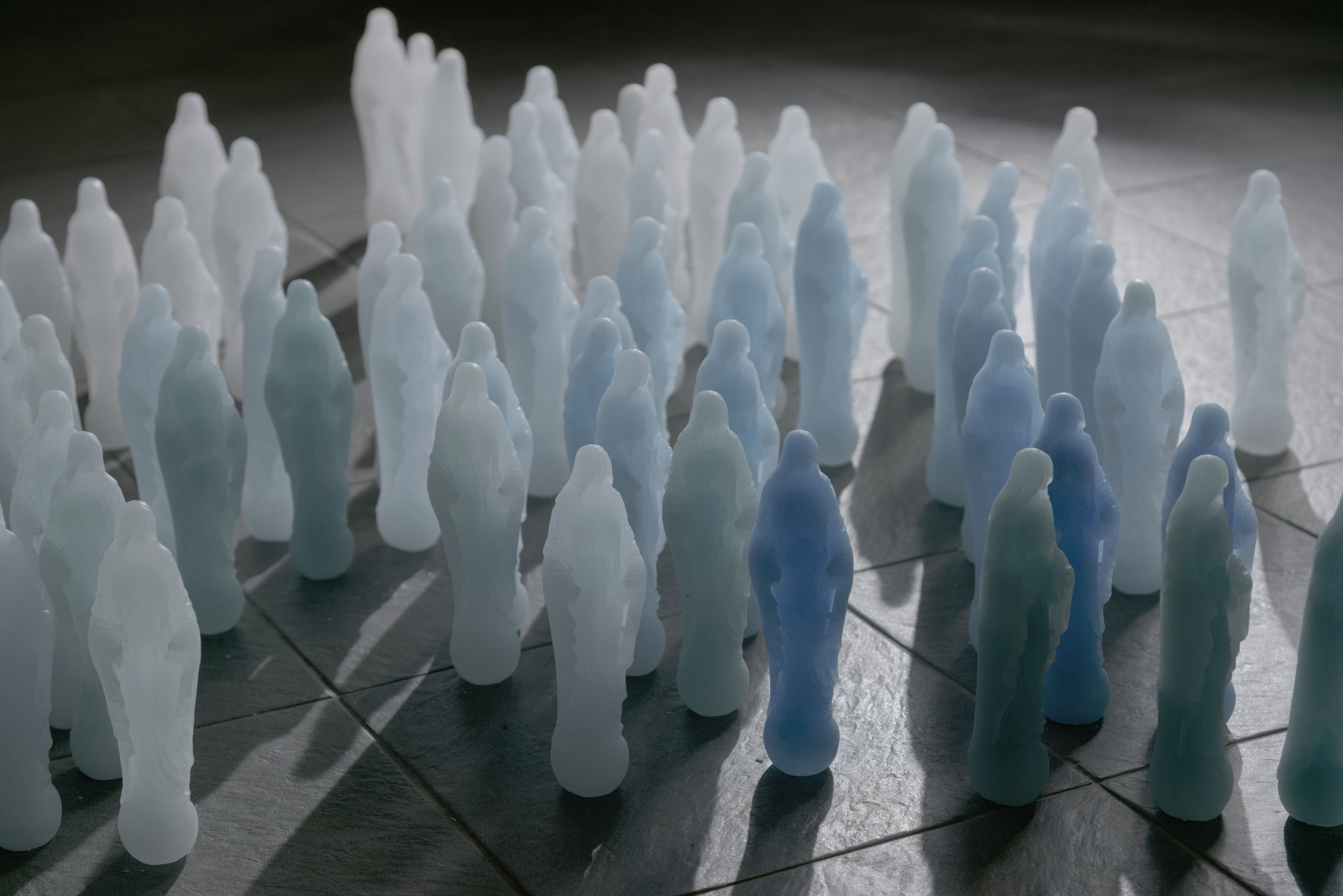 We sleepwalk into Claire Kim’s meticulously realised ‘Somatic Synesthesia’. Amongst the blackbead skull, the machine of Asian horror movie human hair and draped intestines, a beautiful mindscape from the triteness of blue and white Madonna candles and a crystal chandelier. It is literally visceral, literally Shakespearean—that Grand Guru of Synesthesia.